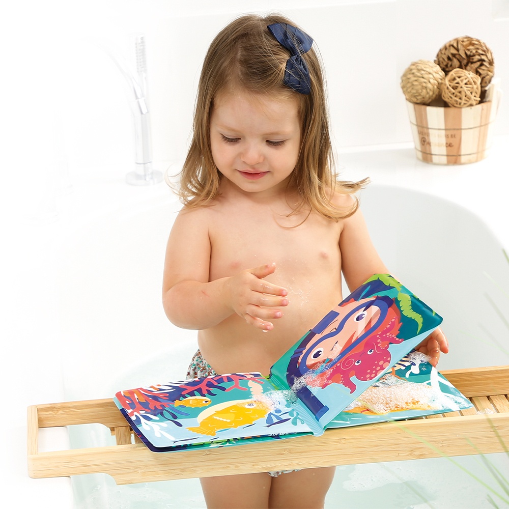 Concepută pentru mânuțele mici, această carte încurajează joaca nesfârșită, favorizând în același timp momentele de relaxare și împărtășire între părinte și copil. După ce timpul de joacă s-a terminat, lăsați cartea să se usuce, iar animalele se vor ascunde din nou pentru o nouă aventură în timpul următoarei băi.
