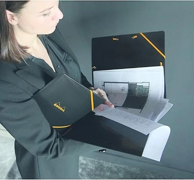 MULTIFUNCȚIONALITATE: documentele și hârtiile mici sunt protejate în siguranță, în stilul emblematic Rhodia.