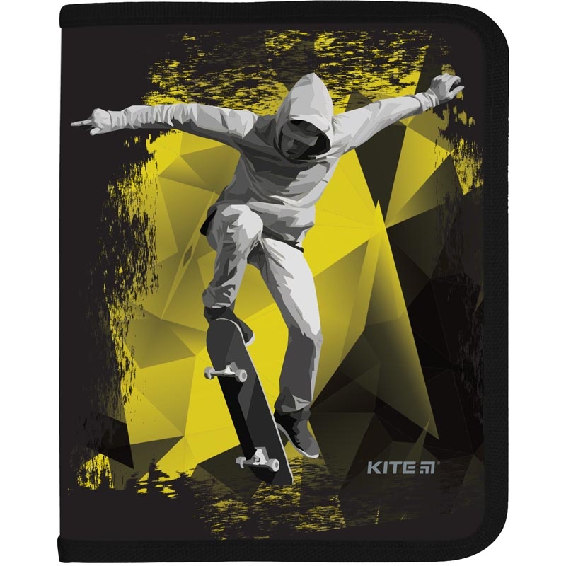 Dosar volum cu fermoar B5 Kite Cool Skateboarder - dosar volum cu fermoar din plastic, în culori strălucitoare, cu un design luminos. Principalele avantaje: conceput pentru depozitarea caietelor sau documentelor în format B5 fabricat din plastic gros, cu o structură specială care protejează imaginea de ștergere are un compartiment, o încuietoare dublă fiabilă, margini din material textil design luminos al copertei