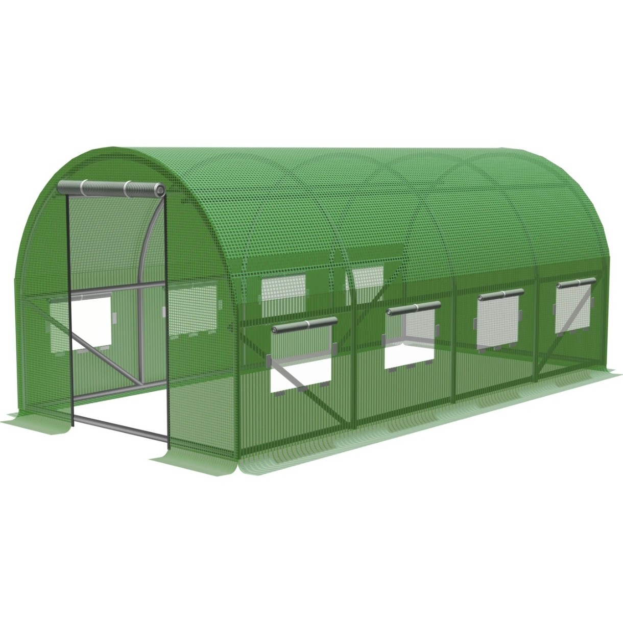 Folia verde este realizată din polietilenă armată cu plasă din polipropilenă, ceea ce întărește structura și previne ruperea.