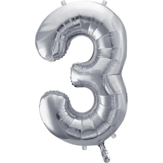 Balon PartyDeco Number 3 86cm Silver (FB1M-3-018)