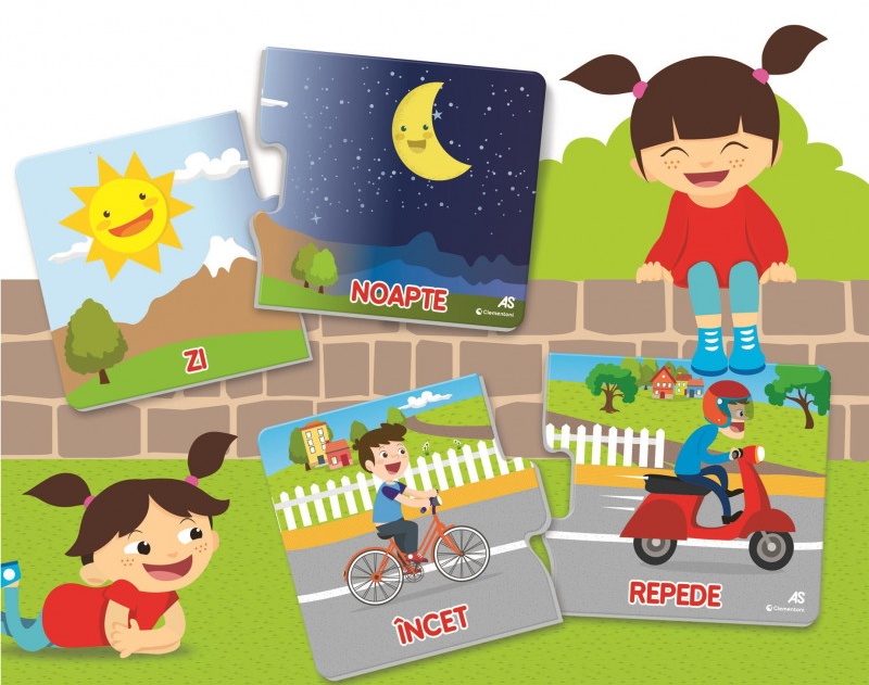 Un joc educațional care îi introduce pe copii în conceptul de contrarii într-un mod simplu și distractiv prin conectarea cărților puzzle. Copiii verifică singuri dacă au greșit sau au dreptate și învață din greșelile lor. Stimulează dezvoltarea abilităților de logică, observație și corelare.