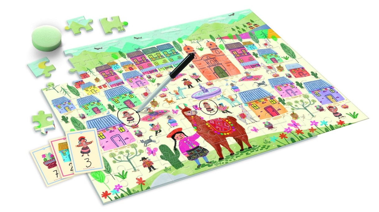 Acest produs este EAN 8005125503636. Puzzle Numaratoare este un joc din seria Invatarea prin emotie care are drept scop dezvoltarea inteligentei emotionale la copii. In prima faza copilul trebuie sa uneasca piesele de puzzle, pentru ca mai apoi sa poata numara elementele de pe acesta. Un puzzle plin de detalii care stimuleaza gandirea logica, matematica si invata copiii sa recunoasca numerele, sa socoteasca si sa scrie. Cu markerul special, copilul poate scrie direct pe cartonase sau incercui elementele pe puzzle, iar mai apoi sterge usor si o poate lua de la capat. Valori dezvoltate coordonarea, memoria, gandirea prin imagini, abilitatile motorii. Jocul contine 104 piese de puzzle, 33 de cartonase ilustrate, 1 marker, 1 buretel si 1 manual de instructiuni.