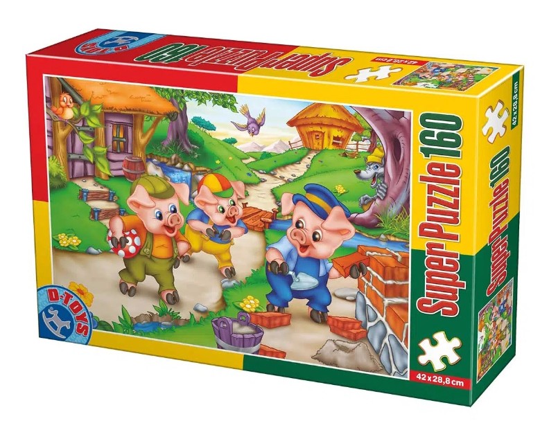Super Puzzle 160 piese – Cei 3 Purceluși deschide larg porțile imaginației infinite. Scenarii de basm, învățăminte potrivite copiilor sau inventarea altor povești sunt activități ce completează asamblarea și fac din această activitate un timp cu sens și veselie.