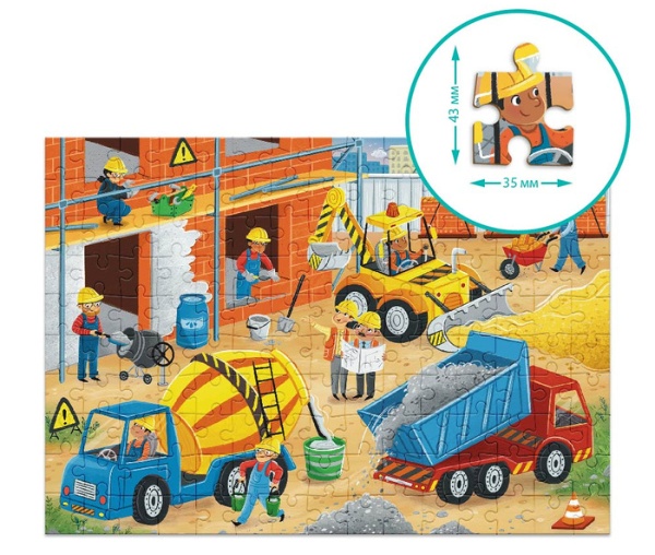 Puzzle „Constructorul” este o ghicitoare captivantă care introduce copilul în lumea construcțiilor. Imaginea colorată a unui șantier cu muncitori, utilaje și unelte face jocul interesant și educativ.