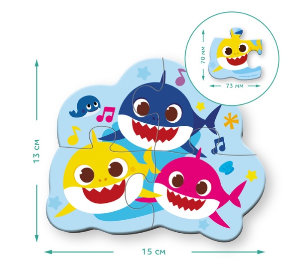 Fiecare puzzle prezintă personaje simpatice din melodia îndrăgită “Baby Shark”, care vor captiva atenția celor mici.