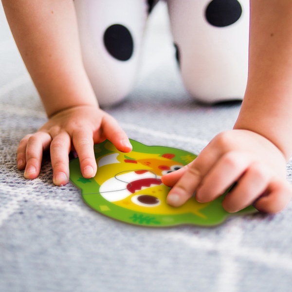 Puzzle-ul “Baby Shark” de la Dodo este un set viu colorat, creat special pentru copiii mici de la 2 ani. Conține 6 puzzle-uri separate, cu dificultate progresivă: