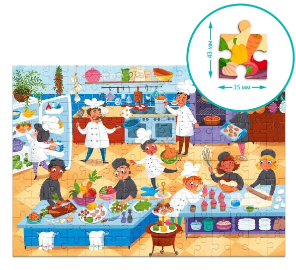Puzzle-ul „Profesii: Bucătar” de la Dodo este un joc captivant care îi va introduce pe copii în lumea fascinantă a bucătarilor! Ilustrația colorată și detaliată a unei bucătării profesionale creează atmosfera unui restaurant adevărat.