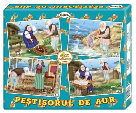 Asamblează puzzle-ul "Peștișorul de aur" și descoperă povestea în cele 4 imagini, iar pe verso cutiei vei găsi un fragment din poveste. Acest model de puzzle este prezentat în 4 trepte de dificultate, pentru diferite vârste. Cei mai mici au la îndemână imaginea din 6 piese, apoi altele cu 12, 16 și, respectiv, 25 piese. Asamblând puzzle, copiii învață să fie mai perseverenți și își: - îmbunătățesc coordonarea ochi-mâna, concentrarea și îndemanarea - sporesc creativitatea și imaginația - dezvoltă abilitatea de rezolvare a problemelor - dezvoltă răbdarea - cresc stima de sine, căpătând un plus de încredere în forțele proprii