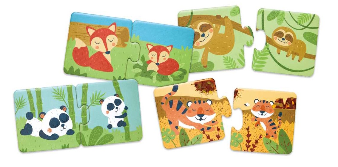 Acest puzzle de 36 de piese este conceput pentru a stimula mintea în dezvoltare a copiilor și pentru a-i ajuta să potrivească 18 perechi de animale și puii lor.