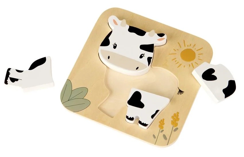 Dezvoltă îndemânarea și coordonarea copilului tău cu puzzle-ul din lemn în formă de vacuta de la Premaman! Cu 4 piese ușor de manevrat, acest puzzle este ideal pentru stimularea coordonării mână-ochi și motricității fine, oferind în același timp ore întregi de distracție creativă.