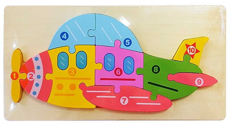 Puzzle-ul educativ din lemn Avion 30X15cm este o jucărie distractivă și educativă pentru copiii cu vârsta de peste 3 ani. Puzzle-ul este format din 10 piese de lemn, care pot fi asamblate pentru a crea un avion.