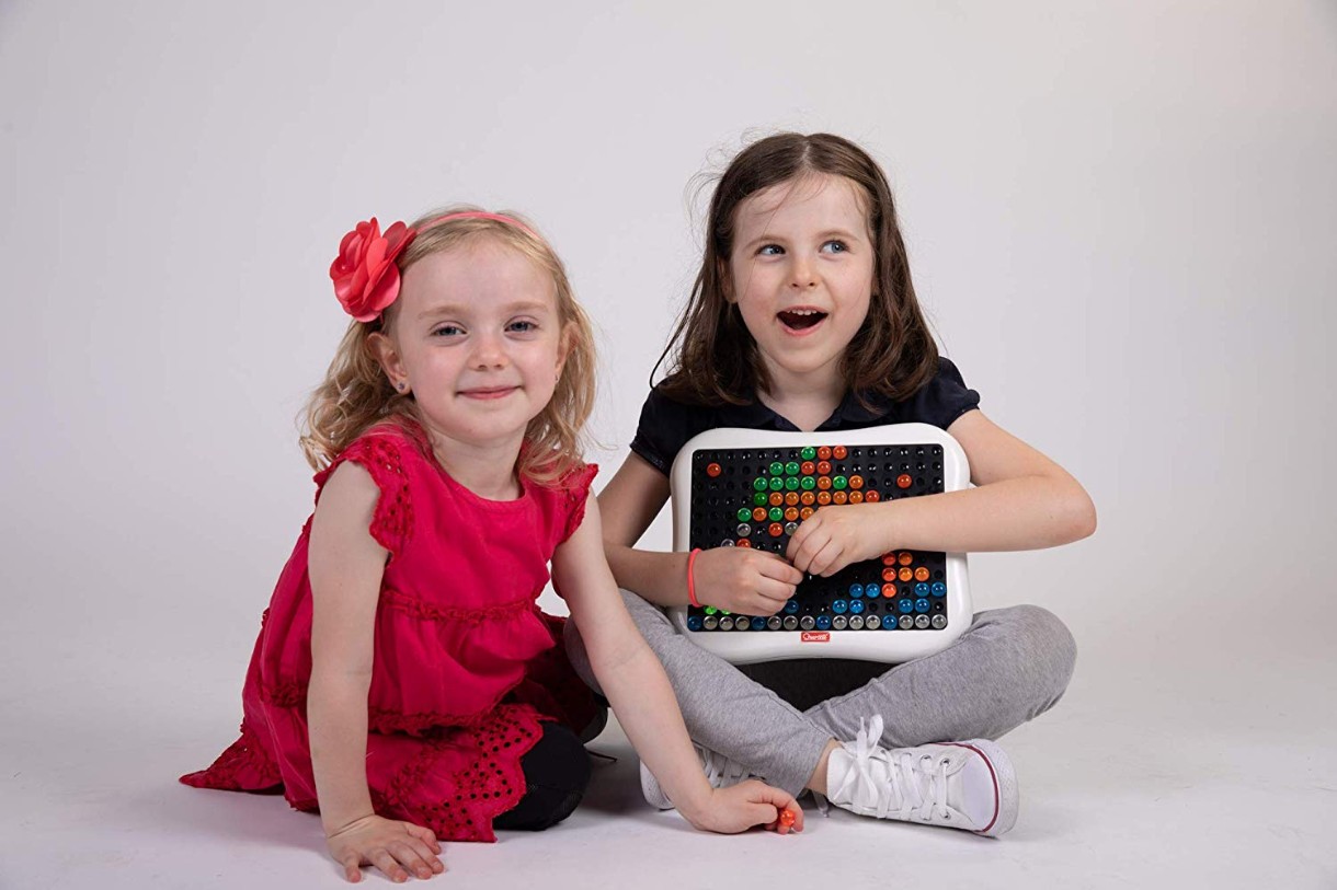 O lampă de creație pentru iluminarea camera pentru copii, Peg Brite are un design atractiv și modern, cu ecran plat. Structura originală și inovatoare a ecranului Peg Brite vă permite să creați imagini cu etichete absolut gratuite și fără restricții (albumul conține 12 exemple). Lumina este generată de un circuit electronic echipat cu ultima generație de LED-uri, foarte luminos și cu un consum foarte redus. Pungile au forma unor becuri foarte mici care se introduc cu ușurință în sloturile ecranului și sunt plăcute la atingere; Sunt fabricate din material cristalin care produce reflexii frumoase de lumină, chiar dacă Peg Brite este oprit. 3 baterii AA (nu sunt incluse).