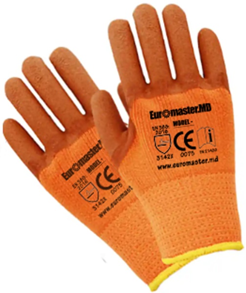 Mănuși de cauciuc EuromasterMD 75 g, portocalii. Mănuși fiabile și colorate pentru protecția mâinilor în timpul lucrărilor casnice, de construcții și industriale. Asigură confort, durabilitate și siguranță în îndeplinirea sarcinilor.