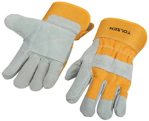 Mănușile de lucru din piele Tolsen sunt confecționate din piele de vacă de tip split și sunt aprobate CE, oferind un nivel ridicat de protecție la lucrările mecanice. Palma este întărită cu piele neagră de vacă pentru o durabilitate sporită și rezistență la uzură în contact cu uneltele și suprafețele. Mănușile oferă confort, libertate de mișcare și comoditate în diverse activități de lucru.