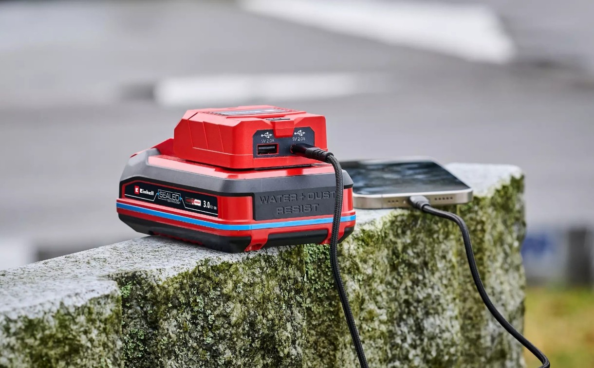 Cu adaptorul pentru baterii Einhell TC-CP 18 Li USB A/C-Solo USB și o baterie Power X-Change (disponibilă separat), veți avea întotdeauna la îndemână o sursă de alimentare externă pentru dispozitive mobile precum smartphone-uri, tablete și cititoare de cărți electronice. Cele două porturi USB ale sale pot fi utilizate pentru a încărca două dispozitive simultan, cu 2,0 amperi fiecare, sau pentru a le alimenta cu 5 volți. Adaptorul este echipat cu un port USB-A și un port USB-C. Un indicator LED de pe carcasa adaptorului indică starea de funcționare în orice moment. Imediat ce adaptorul cu baterie este pornit prin intermediul butonului și LED-ul se aprinde, acesta poate fi utilizat pentru a încărca sau alimenta dispozitive cu consum redus. Adaptorul este livrat fără baterie sau încărcător.