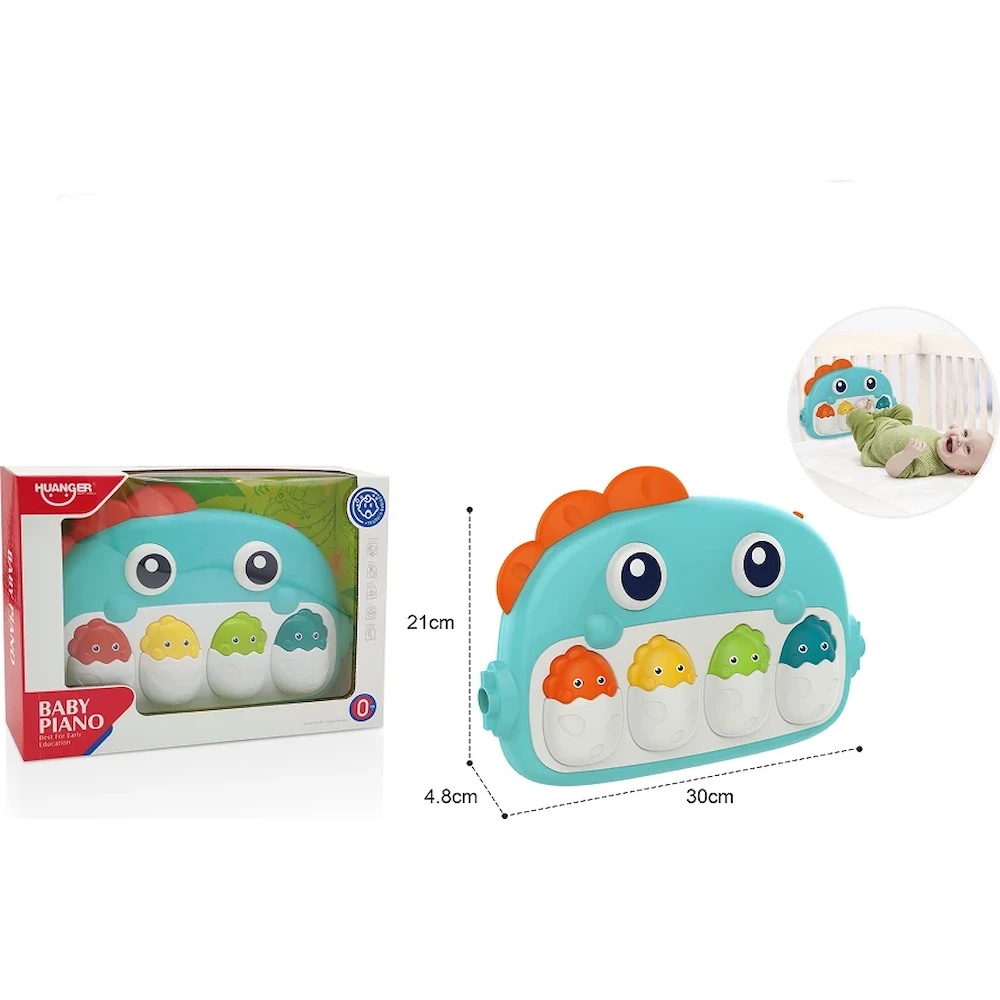 Pianul muzical interactiv în formă de dinozaur este conceput special pentru bebeluși, oferind o experiență de joacă sigură și captivantă. Clapele mari și colorate sunt ușor de acționat de mâinile mici, iar sunetele și melodiile atrag atenția copilului și îl încurajează să exploreze.