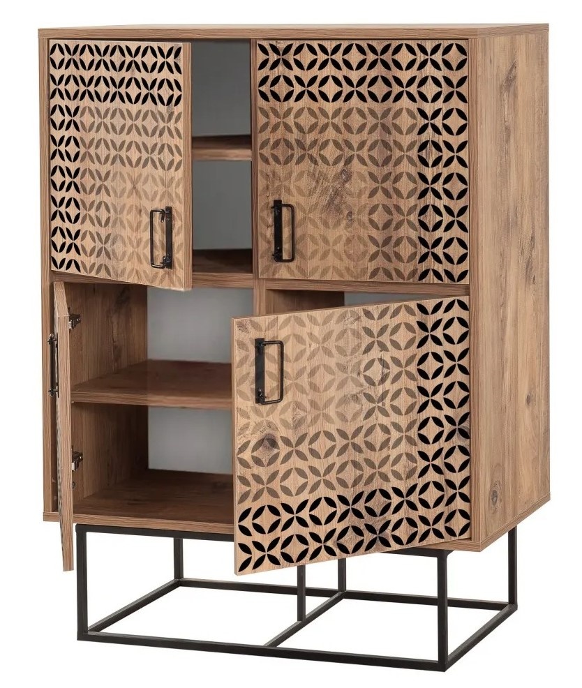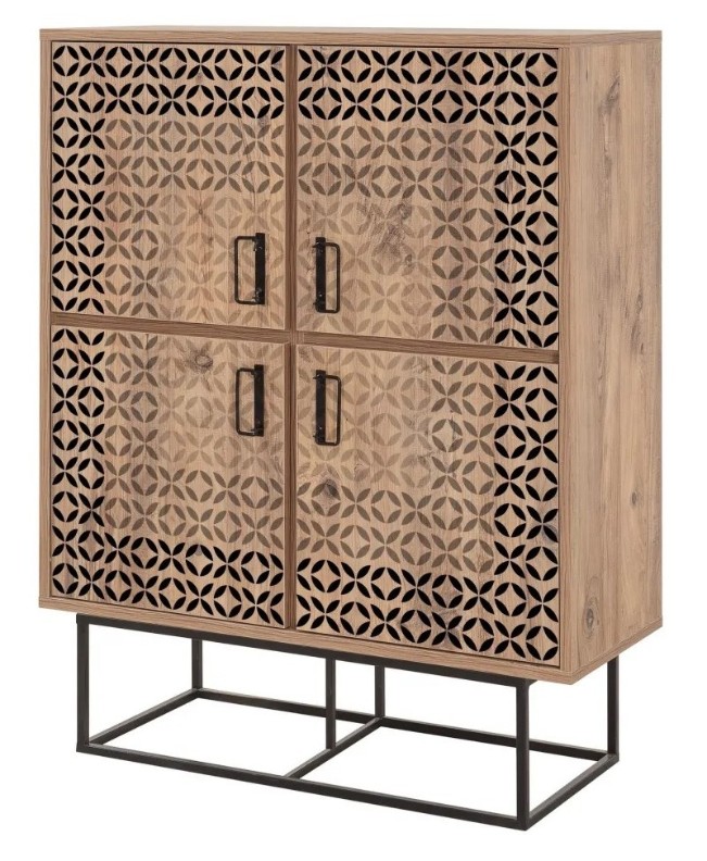 Confectionat din placi aglomerate acoperite cu 100% melamina, acest Comoda este construit pentru a rezista. Grosimea de 18 mm asigura durabilitatea si robustetea, In timp ce cadrul metalic adauga o nota industriala care va ridica instantaneu estetica oricarei Incaperi. Manerele metalice elegante ofera un aspect modern si sofisticat.