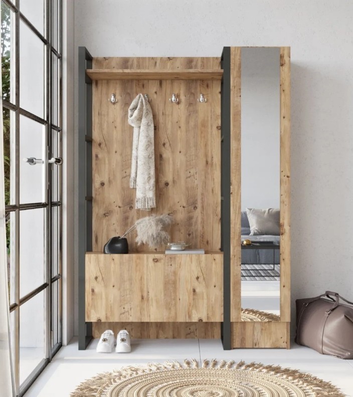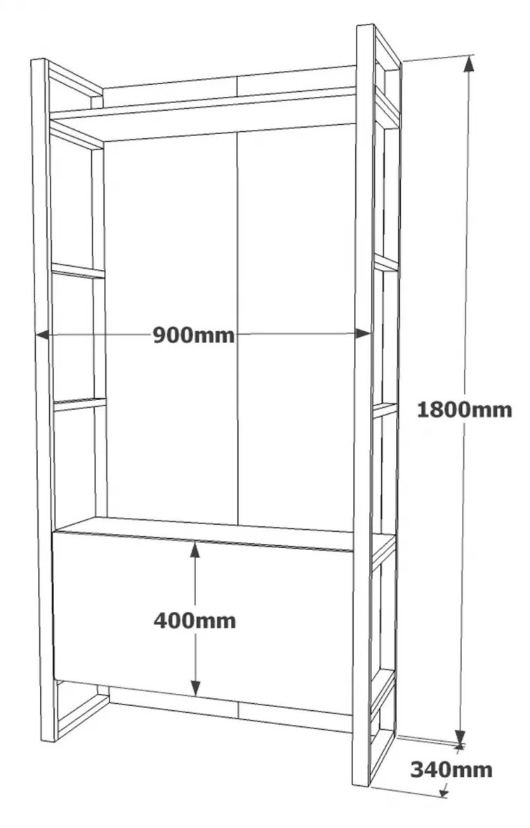 Dimensiunile de 90 cm lățime, 180 cm înălțime și 34 cm adâncime asigură capacitate mare de depozitare fără a încărca spațiul. Lățimea suplimentară de 35,5 cm și adâncimea de 35,5 cm oferă opțiuni adiționale pentru organizare. Holul devine ordonat, echilibrat și primitor.