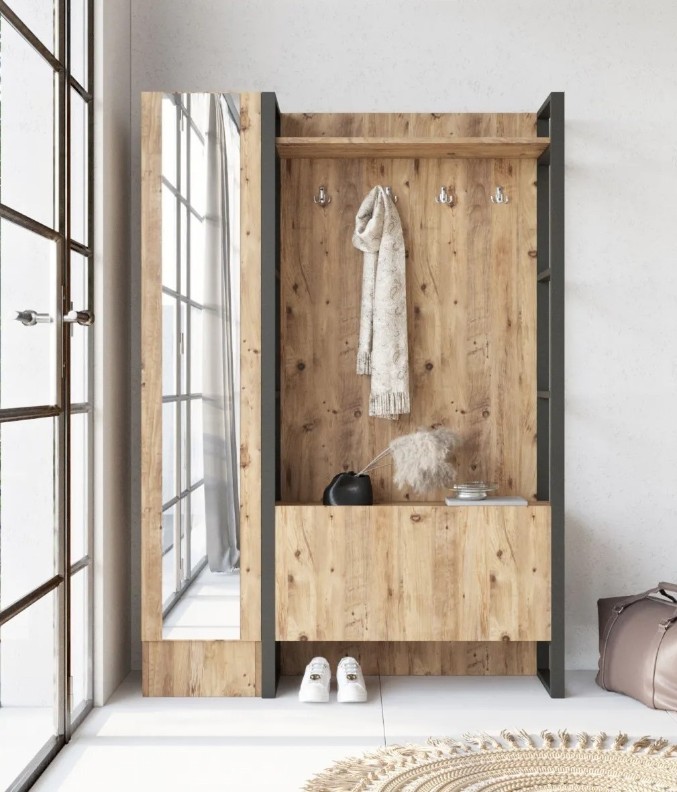 Dimensiunile de 90 cm lățime, 180 cm înălțime și 34 cm adâncime asigură capacitate mare de depozitare fără a încărca spațiul. Lățimea suplimentară de 35,5 cm și adâncimea de 35,5 cm oferă opțiuni adiționale pentru organizare. Holul devine ordonat, echilibrat și primitor.