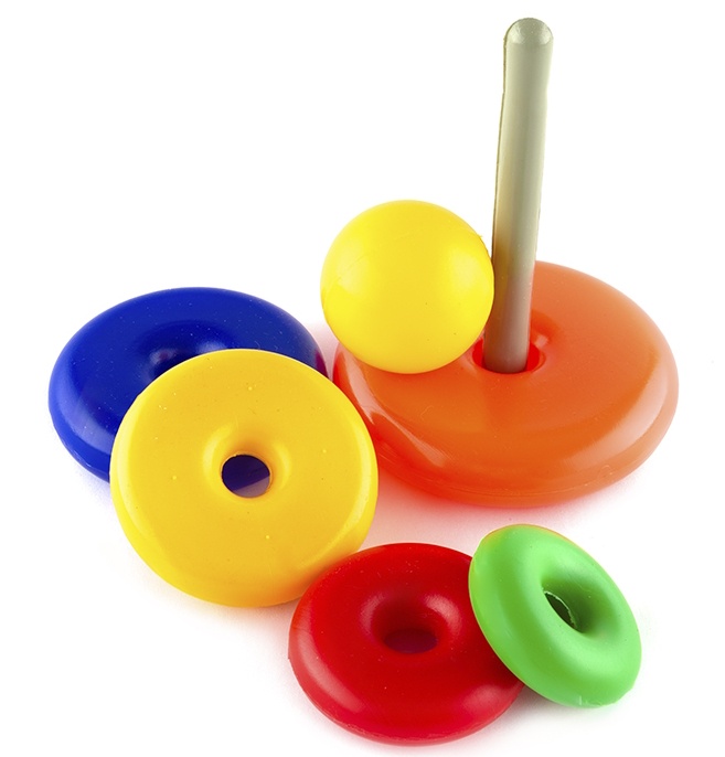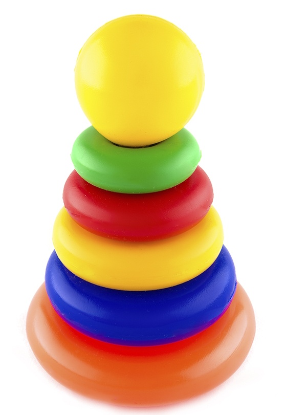 Piramida „Bebeluș” este concepută pentru copiii cu vârsta de 3 ani și peste. Este formată dintr-o bază pe care sunt înșirate cinci inele multicolore de diferite diametre și un vârf în formă de minge. Jucăriile piramidale sunt o modalitate excelentă de a dezvolta abilitățile motorii fine și gândirea logică la un copil.