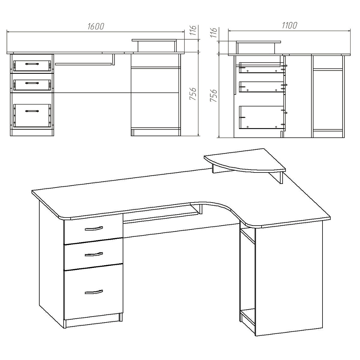 Masa de birou Компанит СУ-3 Stejar Sonoma