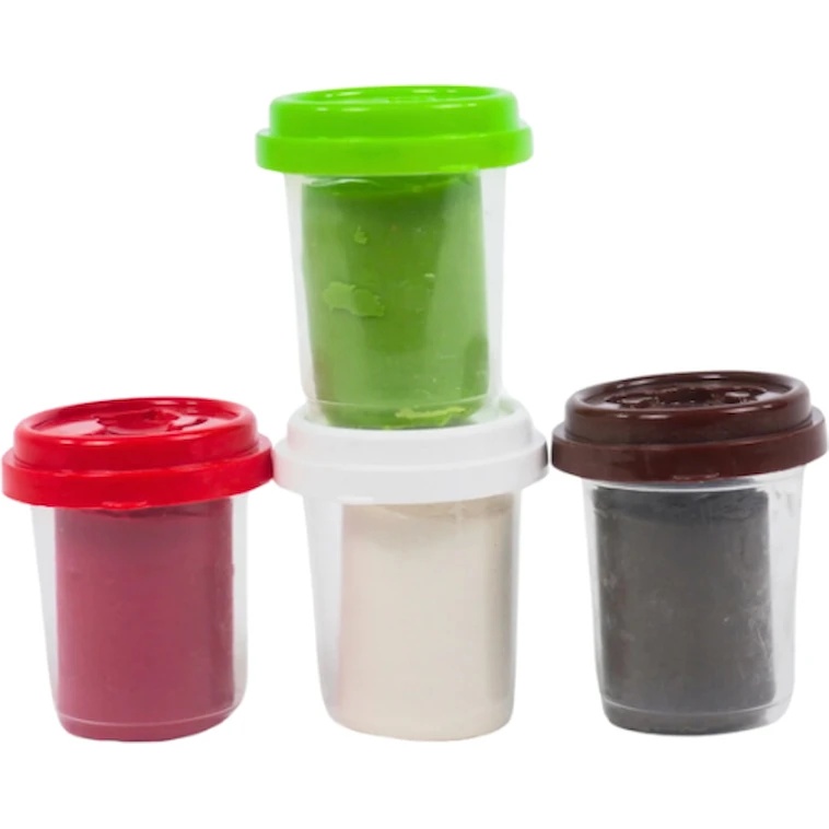 - Culori vii: 4 borcănele de plastilină colorată pentru creații creative