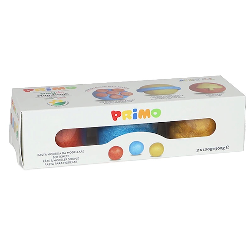 Set de masă moale pentru modelaj cu 3 culori fluorescente, în borcănașe individuale. Easydò cu gluten este realizat din 95% componente de origine vegetală.