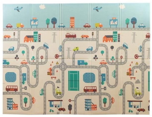 Covorul multifuncțional din spumă PlayTo este versatil pentru întreaga familie. Este de neînlocuit în timpul jocului, dar și în timpul exercițiilor ușoare, primele încercări de ședere și dezvoltarea abilităților motorii. Este cu două fețe, deci poate fi folosit ca un covor pentru exerciții fizice acasă, o podea moale într-un cort, un șezlong pliabil în piscină, în grădină, o pătură de picnic sau un covor de plajă. Avantajele sale sunt, de asemenea, apreciate de grădinițe, școli, centre comunitare și centre pentru copii ca un mare sprijin pentru jocul în siguranță și diferite forme de activitate fizică. Moale la atingere, realizată dintr-un material foarte frumos, oferă o izolație acustică și termică excelentă în încăperile cu podele reci, protejează împotriva acarienilor și abraziunilor pe un covor dur. O suprafață antiderapantă special concepută protejează bebelușul de o cădere periculoasă. Utilizarea covorașelor protejează învelișurile de podea sau covoarele de murdărie și daune. Covorul are o dimensiune foarte impresionantă de 200x150 cm, dar după plierea ocupă puțin spațiu, deoarece doar 70x40x10 cm, și este ușor să-l rulați într-o pungă practică în care vi se livrează. Covorul este certificat EN71 și, prin urmare, din punct de vedere al siguranței materialelor și al compoziției chimice, îndeplinește cerințe mai stricte decât unele saltele concurente.