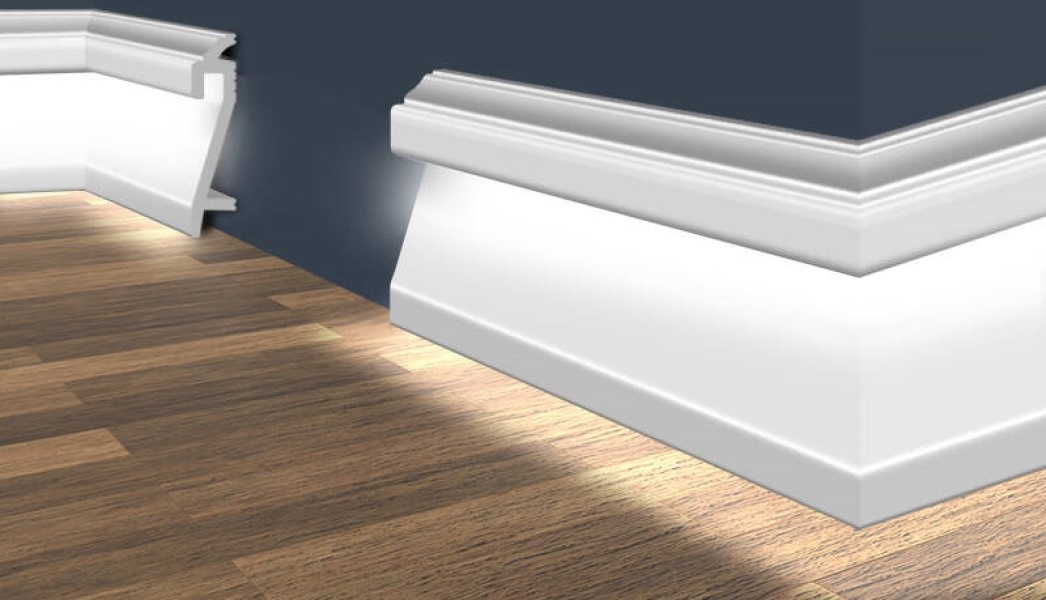 Plintă elegantă din polistiren extrudat, ușoară și durabilă. Datorită designului special, profilul are un spațiu dedicat pentru montarea unei benzi LED (banda LED nu este inclusă în ofertă). După instalare, profilul HF-3 poate fi vopsit în orice culoare cu vopsea fără solvenți.