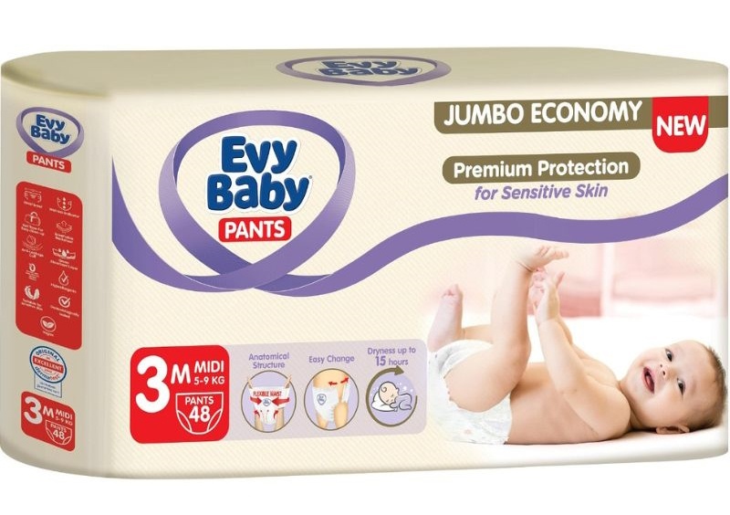 Scutece-chiloți Evy Baby Midi 3/48pcs