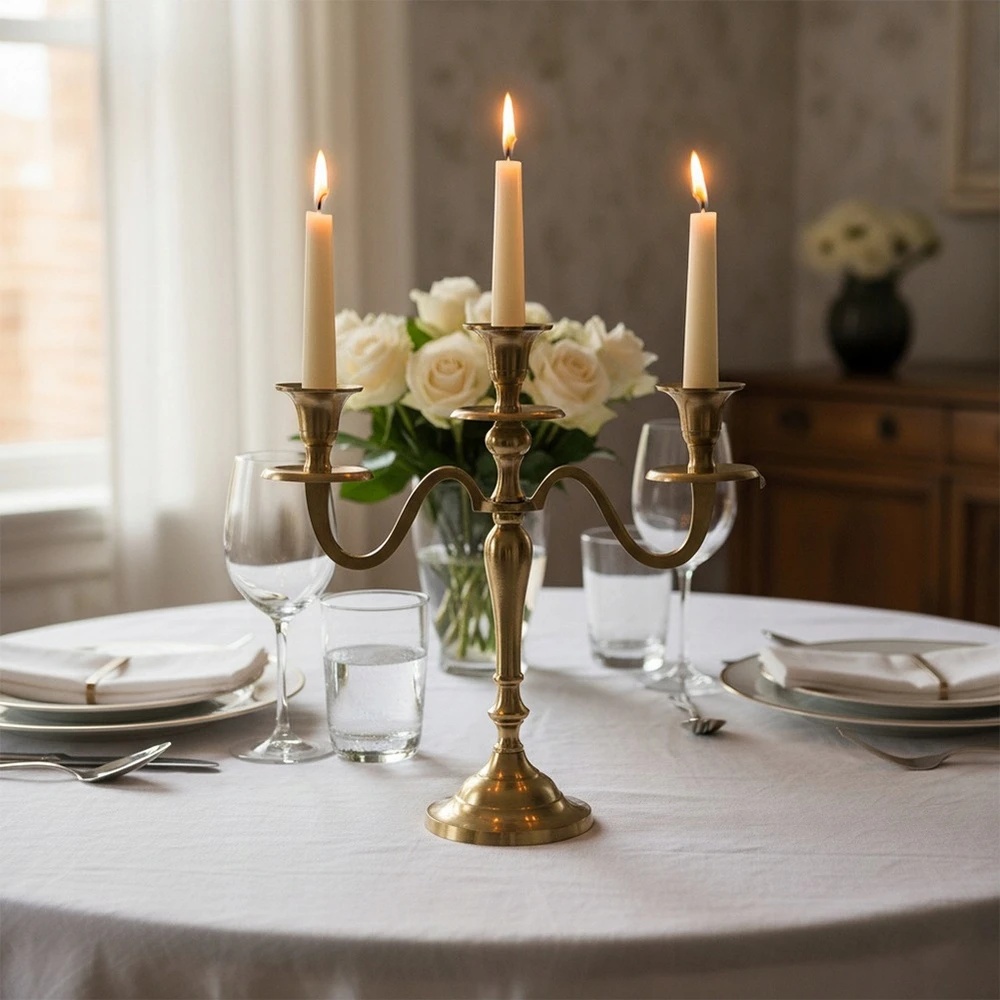 - Fabricat din aluminiu auriu - Sfeșnicul este fabricat în întregime din aluminiu, ceea ce îi asigură rezistența și stabilitatea.
