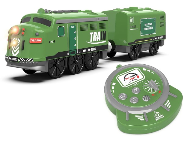 Setul include o locomotivă, un tren cu suspensie magnetică și o telecomandă 2.4G. Este echipat cu faruri frontale și posterioare, efecte sonore realiste și butoane pentru mișcarea înainte, oprire și înapoi. Bucură-te de sunetele de pornire, mișcare și alte efecte care fac jocul și mai realist. Necesită 2 baterii de tip AAA (neincluse).