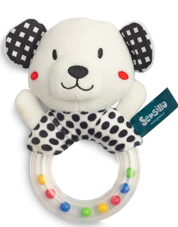 O zornăitoare pentru sugari în nuanțe contrastante de alb și negru a fost concepută pentru a stimula vederea și dezvoltarea senzorială a bebelușului. Având un mâner ergonomic, se potrivește perfect în mâinile mici, permițând o prindere sigură. În interior, mărgele delicate produc un sunet subtil la fiecare mișcare, sprijinind dezvoltarea auditivă și coordonarea.