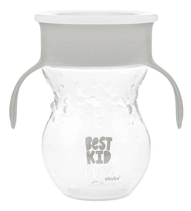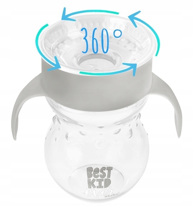 Cana de 360˚ care nu se scurge este concepută pentru a învăța să bea în mod independent. Are o supapă de reținere pentru a preveni scurgerea lichidului. Piesa bucală vă permite să beți de oriunde în jurul marginii ceștii. Mânerele largi și confortabile și forma ergonomică fac ca paharul să fie ținut confortabil cu mâinile mici. Capacul protejează cana de murdărie. Curățare ușoară, rapidă și fără probleme. Produsul este 100% fără BPA (0% BPA).