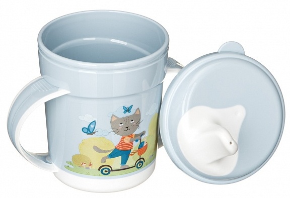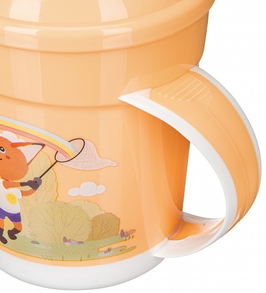 Cana anti-varsare „Plastishka” cu un volum de 320 ml va ajuta copilul să bea singur dintr-o ceașcă.