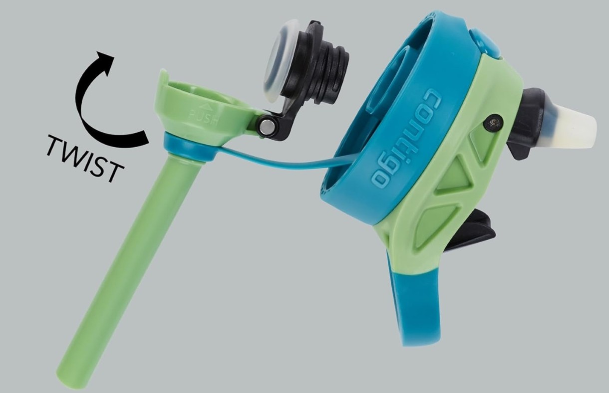 Copiii adoră emoția de a apăsa un buton pentru a dezvălui paiul pop-up, făcând băutul cu o singură mână o joacă de copii. Cioc se ascunde convenabil sub capac, protejându-l de intemperii. Părinții se pot relaxa, datorită supapei anti-scurgere care menține scaunele auto și mesele în siguranță, chiar și atunci când sticla este cu susul în jos.