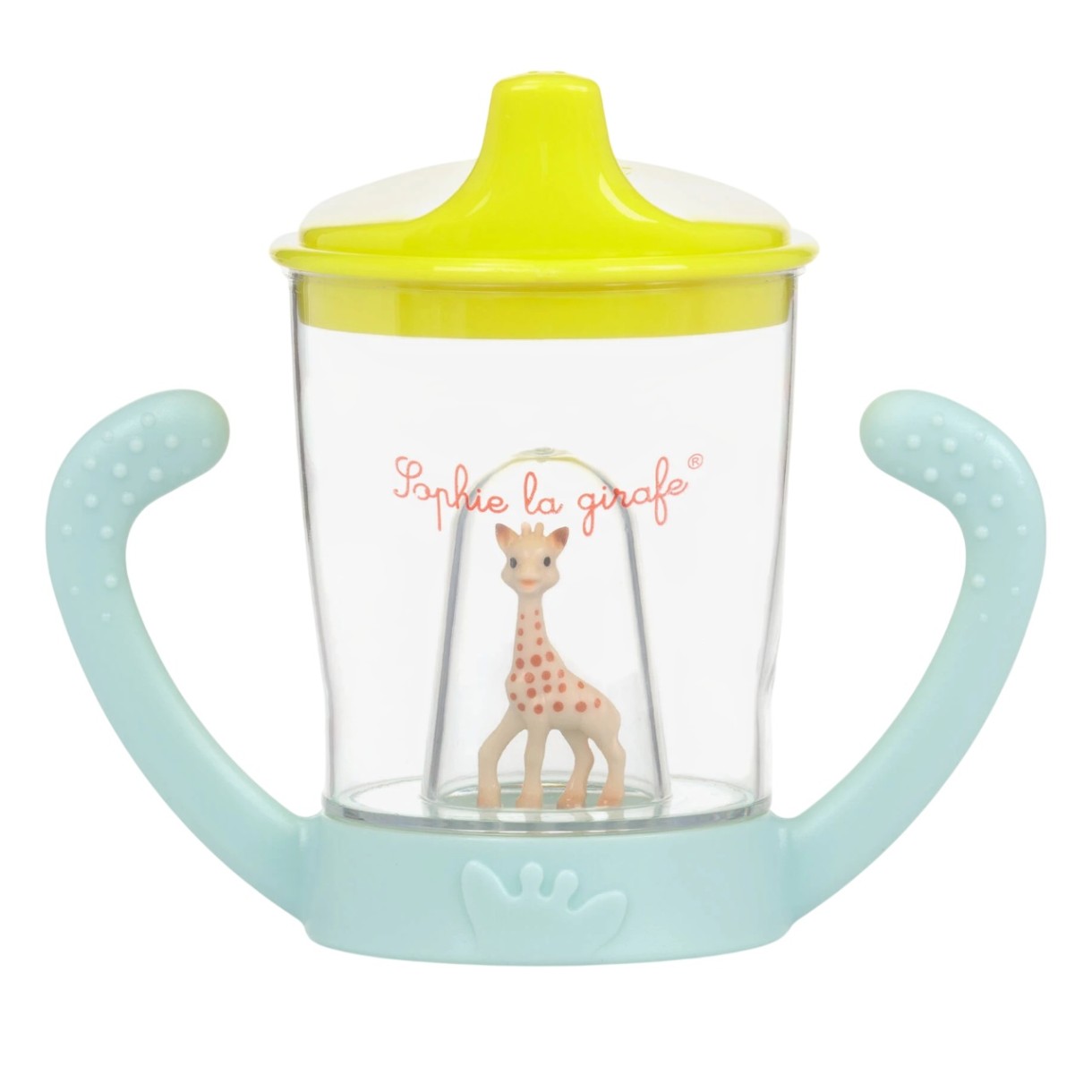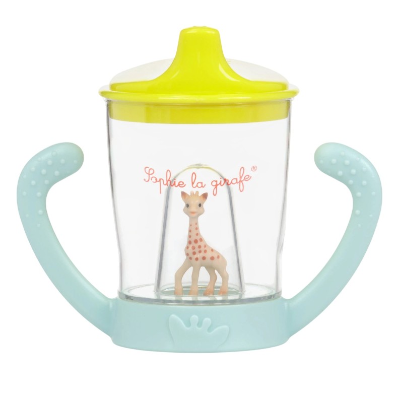 Sophie la Girafe Non-Spill Cup — cană practică și distractivă pentru băieți și fete. Este concepută pentru ca bebelușii să treacă ușor de la biberon la cană, datorită ciocului ergonomic care favorizează acțiunea naturală de supt.