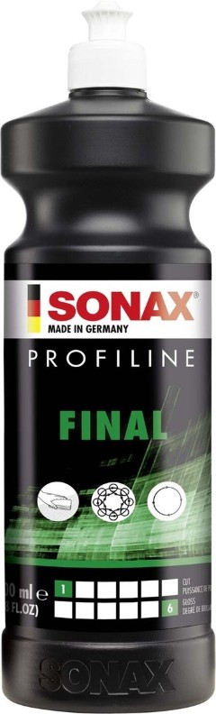Polish fin SONAX PROFILINE Final 1-6 (278300) pentru obținerea unui luciu final de tip oglindă, potrivit pentru aplicare manuală și cu mașina. Conferă stratului de lac vopsea culori intense, saturate și un luciu ridicat al suprafeței. Îndepărtează microzgârieturile de pe suprafețele noi sau deja lustruite. Este polishul de finisare ideal pentru completarea etapelor anterioare de lustruire. Conține silicon.