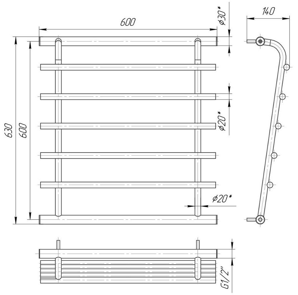 Uscător de prosoape Mario Venus 630х600/600