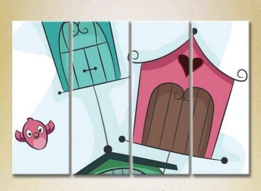 Pictură Rainbow Polyptych Birdhouses and Birds 01 (2230600)