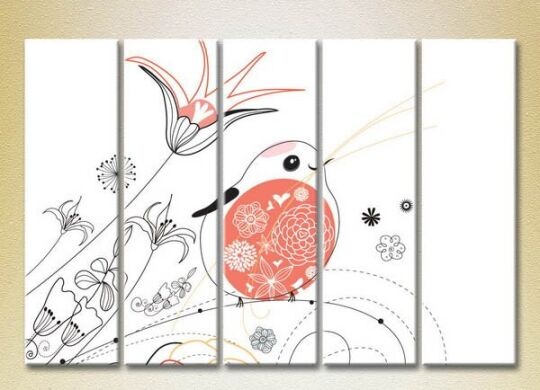 Pictură Rainbow Polyptych Fat Bird and Flowers 01 (2231843)