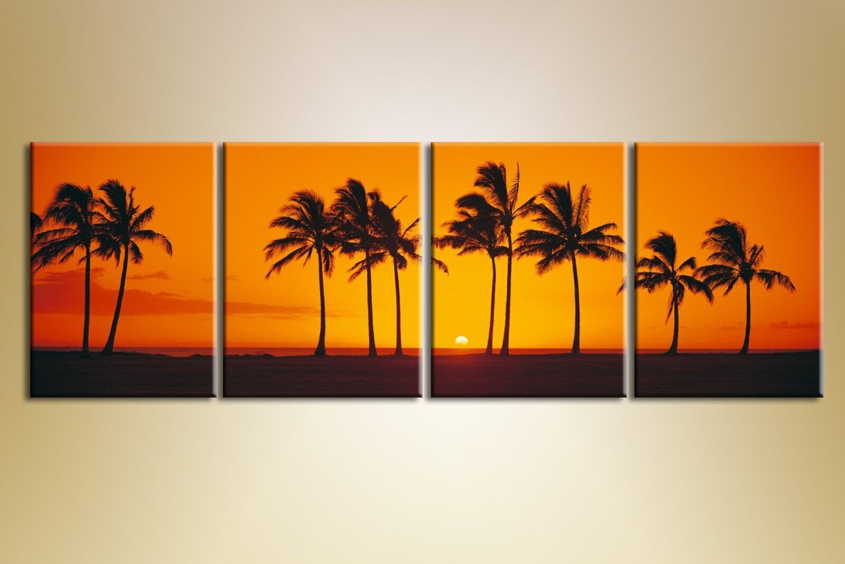 Pictură Gallerix Polyptych of palm trees at sunset (1409544)