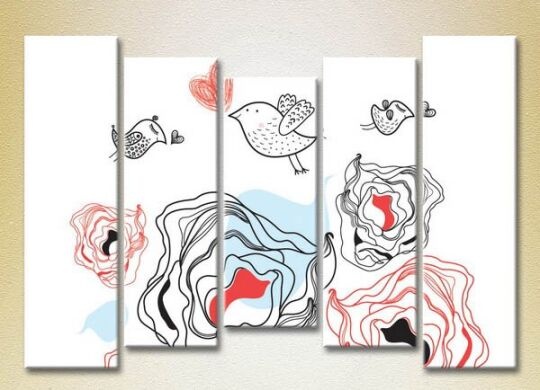 Pictură Rainbow Polyptych Sparrows in Love 03 (2231766)