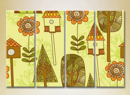 Pictură Rainbow Polyptych Trees and Birdhouses 01 (2230545)