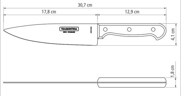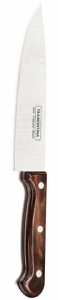 Cuțitul bucătarului Tramontina Polywood cu lama de 17.5 cm este realizat din oțel inoxidabil AISI 420 cu o grosime de până la 2,5 mm, nu își pierde luciul, are o ductilitate ridicată, rămâne ascuțit o perioadă foarte lungă de timp, rezistentă la coroziune și la temperaturi ridicate. Cuțitul Tramontina Polywood poate fi spălat în mașina de spălat vase.