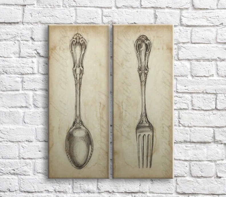 Pictură ArtPoster Spoon and fork on Beige background (3478771)