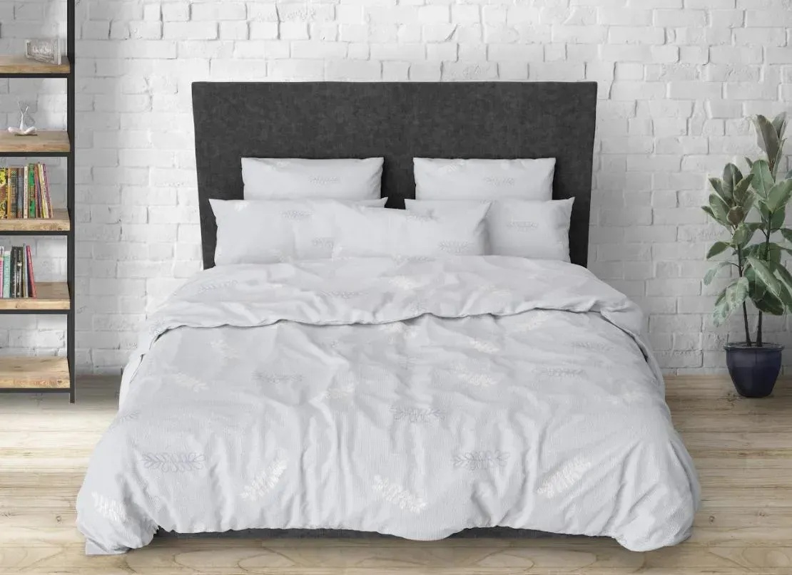 Setul include două fețe de pernă de 50 x 70 cm și o husă de pilotă de 200 x 220 cm. Lenjeria de pat este confecționată din calico de lux, unul dintre cele mai căutate țesături de pe piață astăzi. Este apreciată pentru caracteristicile sale impecabile de performanță - este higroscopică, confortabilă de purtat, ușor de întreținut și destul de durabilă. Schema de culori plăcută este un alt bonus. Puteți fi siguri că acest set se va potrivi perfect în orice interior. Achiziționarea acestui set drept cadou este, de asemenea, o idee grozavă.