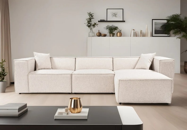 Canapea de colț Trendy Lora L1-O1-1R-POUFFE Light Brown 303x193x65cm GTR003639