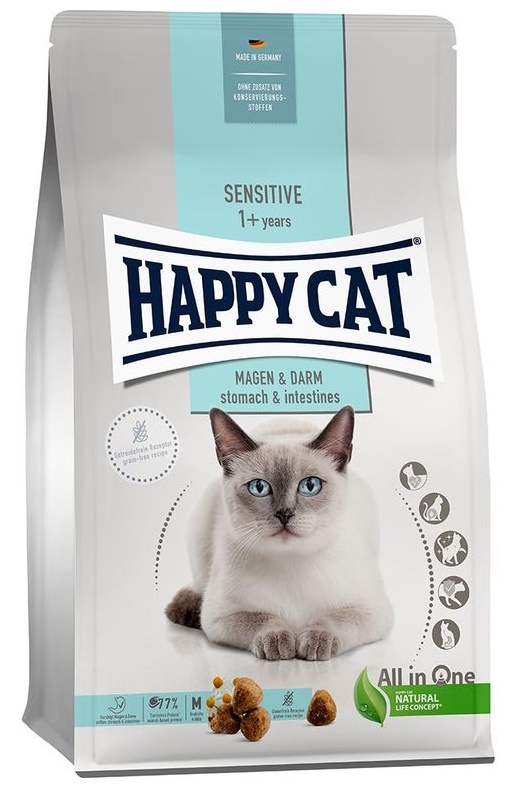 Happy Cat Sensitive Stomach & Intestine a fost special dezvoltat pentru pisicile cu digestie sensibilă.